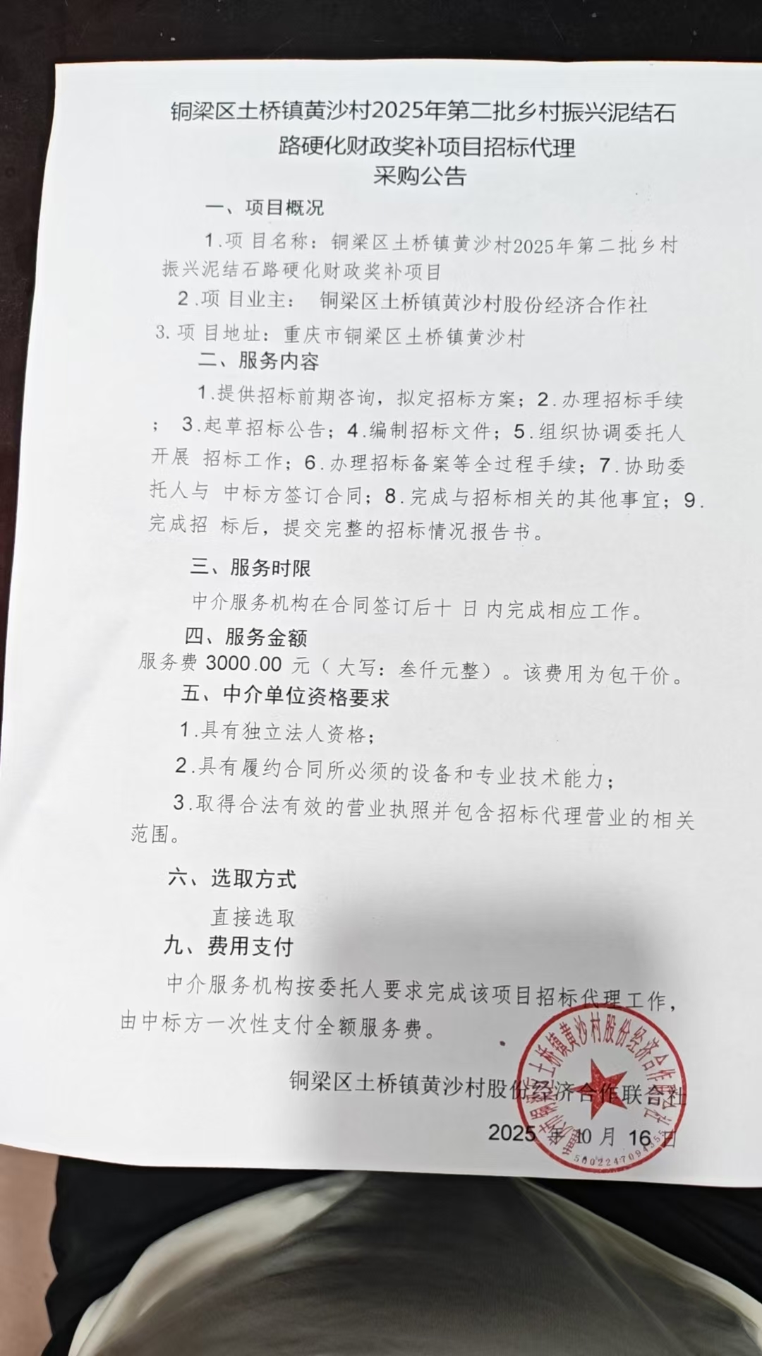 项目名称 | 铜梁区土桥镇黄沙村2025年第二批乡村振兴泥结石路硬化财政奖补项目 |
